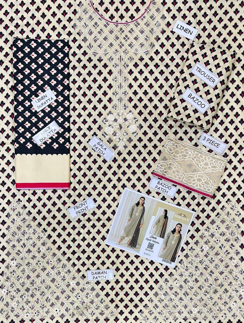 A timeless addition to your winter collection 🌸✨. This 3-piece Baroque Digital Printed Linen suit comes in cream with black patterns, beautifully highlighted with embroidered neckline, sleeves, and daman patch. Paired with a digital printed linen dupatta and trousers, this outfit blends elegance with comfort.