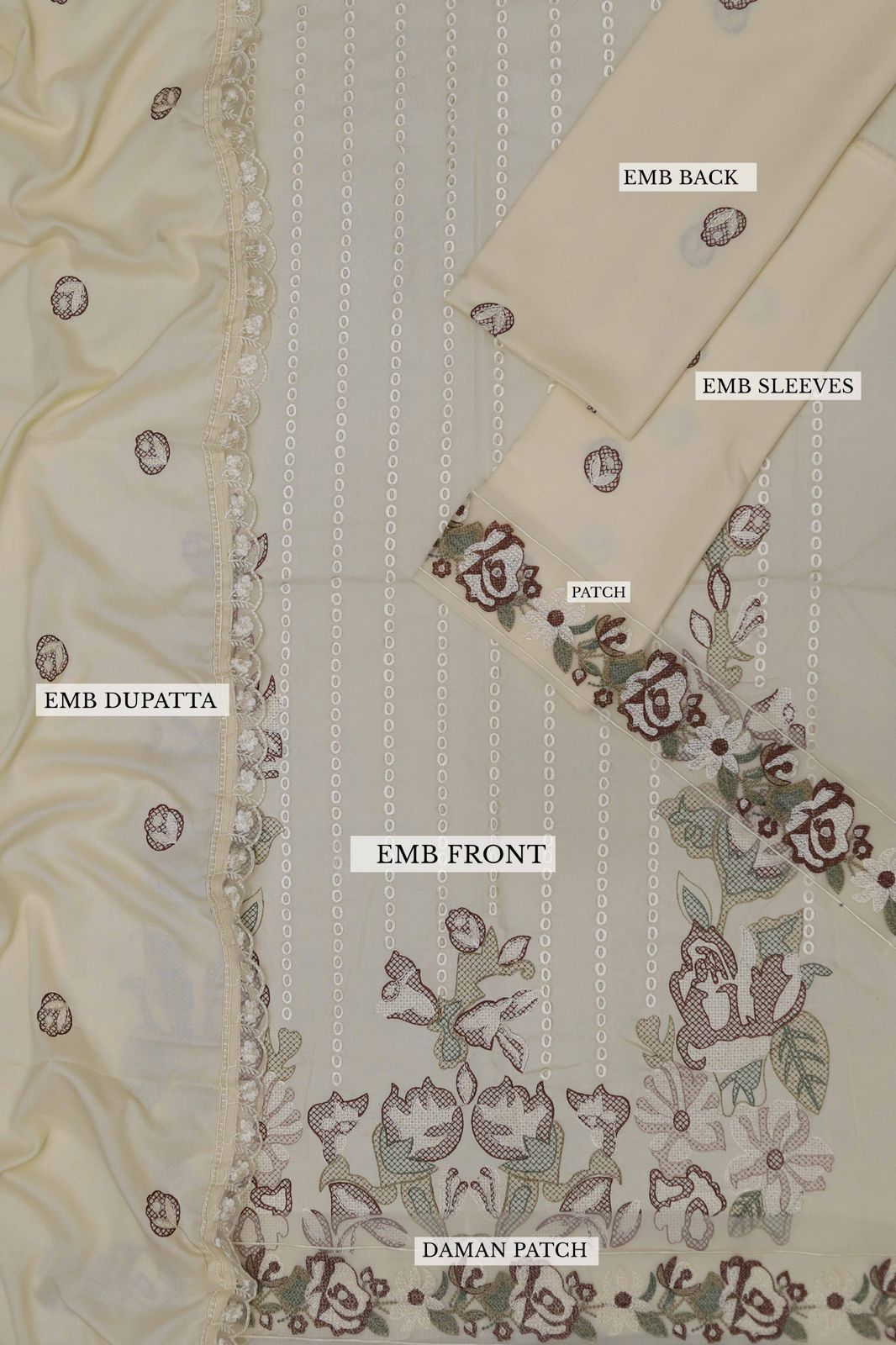 Zaib – Dhanak 3PC Embroidered Suit | Ivory Glow | Wool Shawl